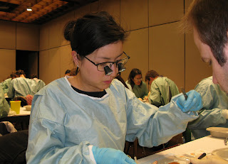 is practiced in the school of the hearing, to describe compositions mostly electro-acoustic music. All participants will first hear a work without knowing what it is. Connect will attempt to describe by means of their own "private language", which was heard. Is not meant to guess the work. Associative descriptions or the description of his own feelings at the hearing are not allowed. Nor should impose a studio technical description. In short, can a consensus be established with an individual description of an "abstract sounds", a silent music. After the discussions the same piece heard again. Experience shows that most will hear completely different. The school of the hearing will also result in no written text, without having to get scores, hear structurally. The idea for this seminar came from the most common question from students, in my musicological seminars, if you have a speaker for music listening: "what should I imagine for here."